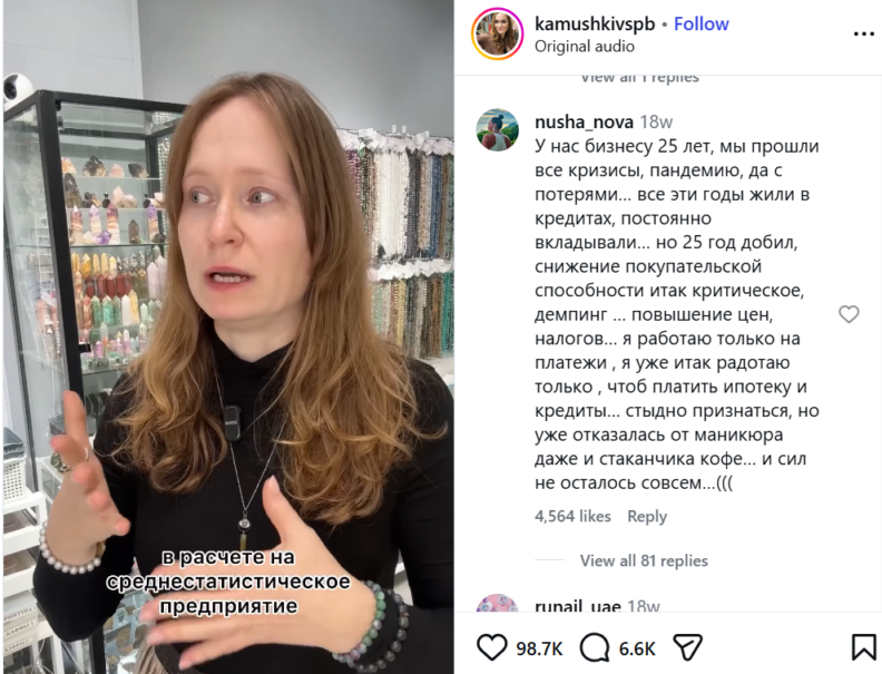 «А что делать, ребят? Типа выйти на улицы протестовать — тюрьма. Записывать видео с реальным мнением — тюрьма. Поэтому и выбирают многие хотя бы иллюзию свободы. Честно, я плачу вместе с вами, автор». Так тренер йоги ответил на видео владелицы мастерской-магазина украшений, в котором она плакала в отчаянии.